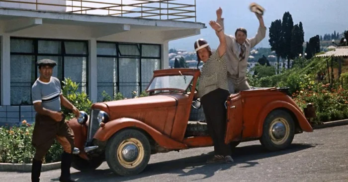 «Москвич-402» многие помнят по бесхитростной комедии 1957 года «К черному морю» снятой Андреем Тутышкиным, а ЗАЗ-965 — в первую очередь, опять же, по комедии «Три плюс два».