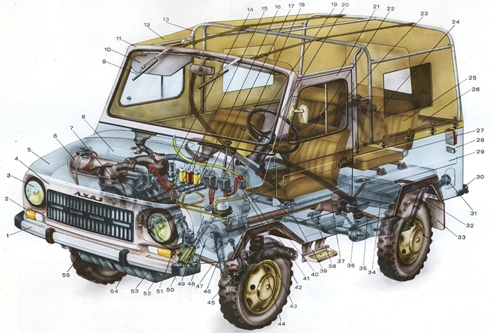 Аскетичная, спартанская отделка салона для внедорожника — пол беды. Но кузов с тентом (серийной версии ЛуАЗ с цельнометаллическим кузовом в советские времена не было) продувался всеми ветрами, а зимой был уж совсем не комфортным. Опытные владельцы написали целую энциклопедии о том, как утеплить кузов и провели на основе своих изысканий множество, в той или иной степени успешных, экспериментов. Многие в советские времена делали для своих машин жесткие крыши. В меру своих возможностей и вкуса.
