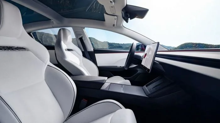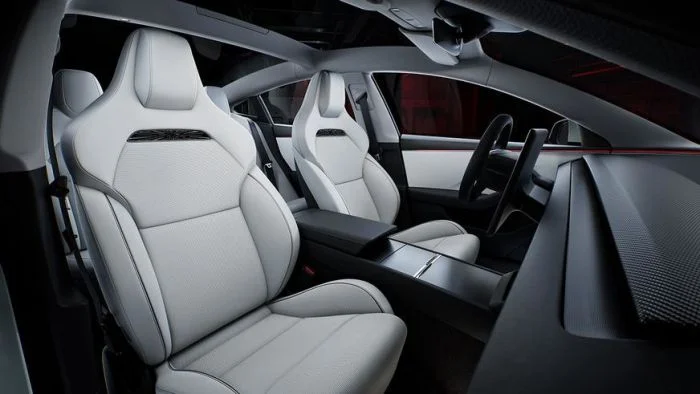 В салоне можно заметить карбоновый декор, новые спортивные кресла с улучшенной боковой поддержкой, водительский планшет диагональю 15.4 дюйма и 8-дюймовый экран для сидящих сзади, а также музыкальную систему с 17 динамиками. Улучшенная звукоизоляция, в том числе за счёт боковых акустических стёкол, сделает поездку тише.