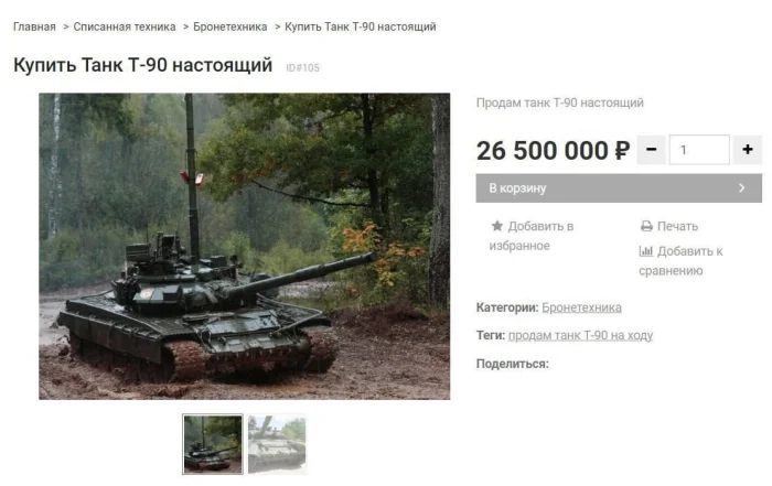 Продавец заявляет, что боевые элементы машины сняты, но сам танк на ходу, легко переоформляется и продается только для использования в гражданских целях.