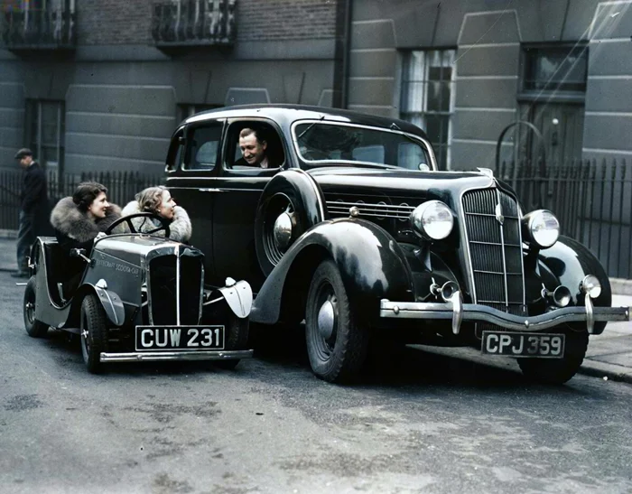 Забавный автомобиль, запечатлённый на фото рядом со "взрослым" автомобилем, вовсе не педальная детская машинка, как можно было бы подумать, а полноценный серийно производившийся автомобиль.