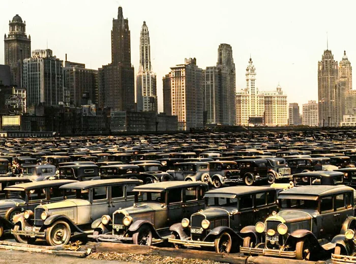 Забитые парковки в Чикаго, 1939 год.