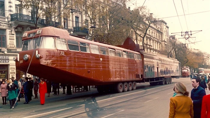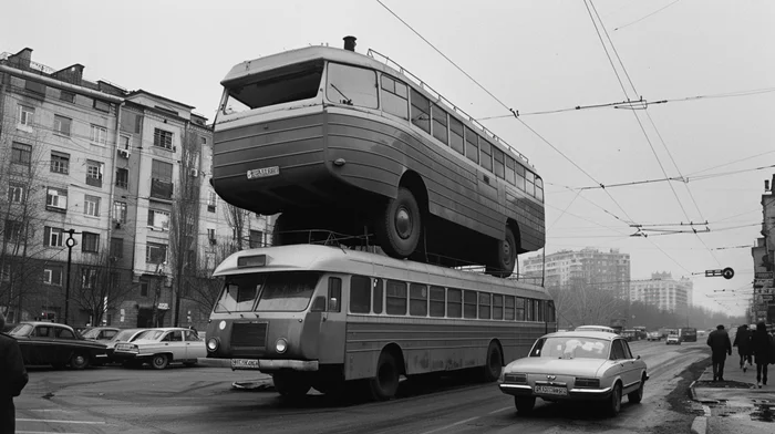Попросил нейросеть изобразить советский двухэтажный автобус, сделав фото в стиле 80-х. Причудливые конструкции - в фотогалерее: