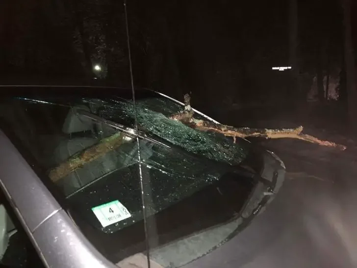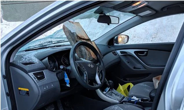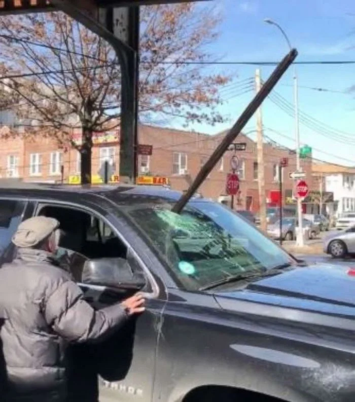 3. Деревянная доска пробила лобовое стекло автомобиля такси, когда упала с путей метро в Куинсе, Нью-Йорк. Никто не пострадал