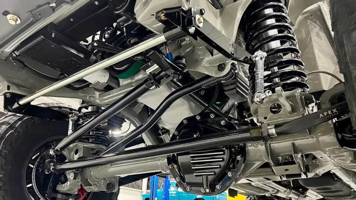 Подвеска лифтована на 83 миллиметра спереди и на 51 миллиметр сзади. Амортизаторы King с выносными резервуарами обеспечивают ход 216 миллиметров спереди и 279 сзади. За кабиной с двумя рядами сидений установили грузовую платформу с креплением для запаски.