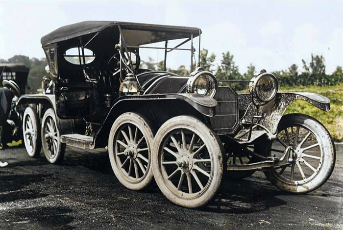 Милтон Ривз добавил четыре дополнительных колеса к стандартной модели Overland, создав автомобиль длиной 20 футов, который продавался за 3200 долларов.