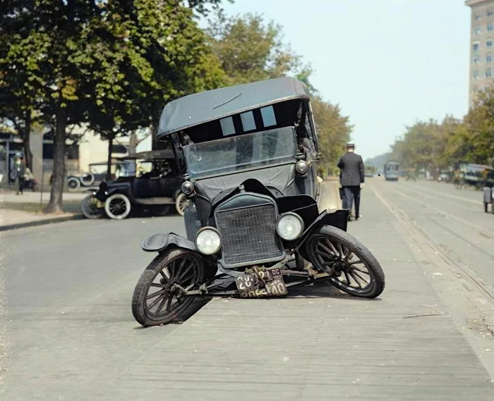Разбитый автомобиль в Вашингтоне, 1922 год.