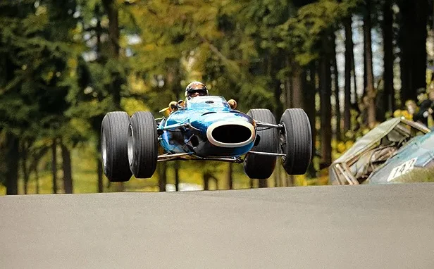 Джеки Стюарт выполняет прыжок на Нюрбургринге, оставляя зрителей в восторге.