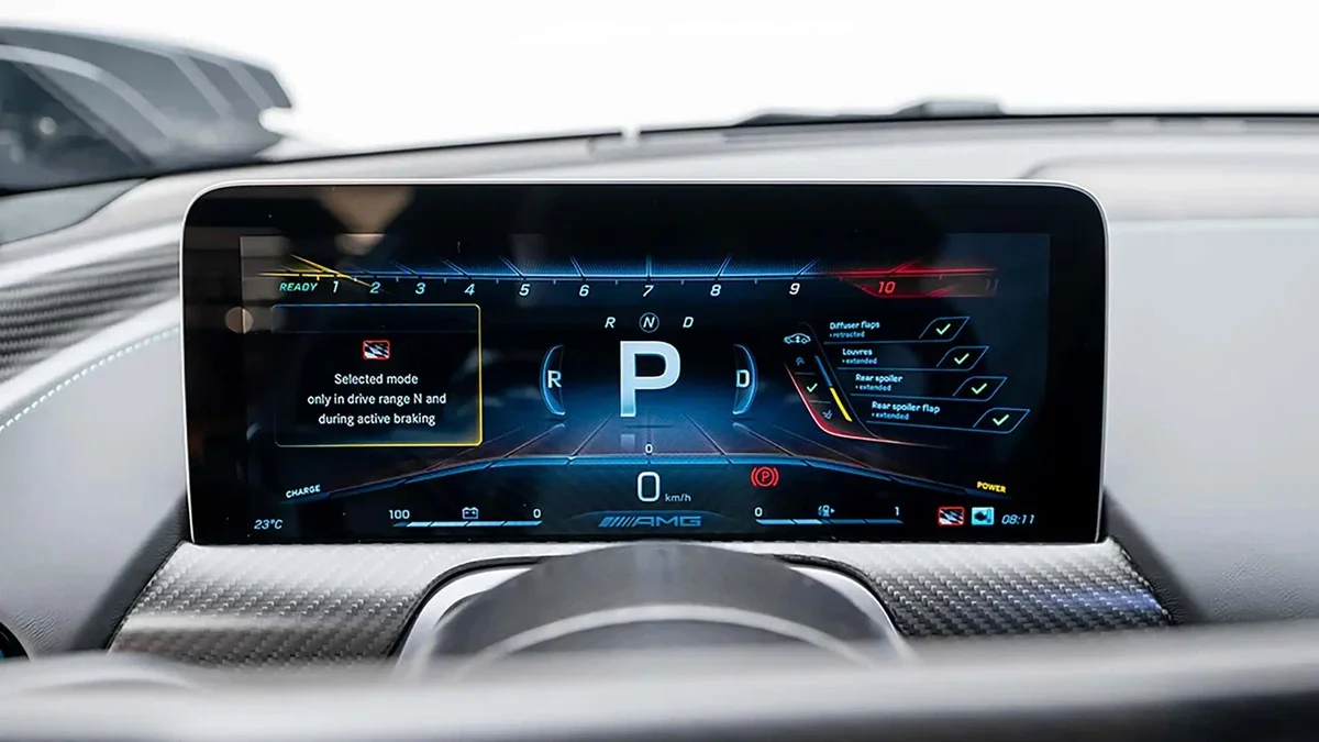 Мощность AMG One достигает впечатляющих 1063 лошадиных сил, что позволяет ему разгоняться до 200 км/ч всего за 7 секунд. Однако инженерная сложность гибридной установки, основанной на переработанном под городские условия 1,6-литровом двигателе Формулы-1, неоднократно откладывала выпуск. Изначально поставки планировалось начать ещё в 2021 году, но первая машина оказалась у владельца лишь в январе 2023 года.