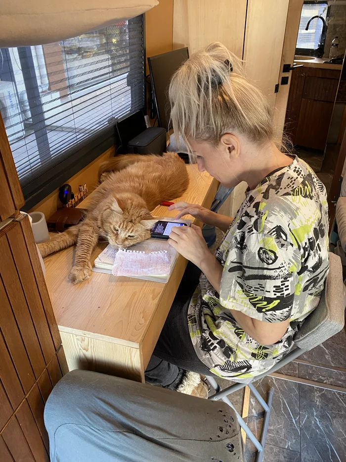 Минус: если ты привык к стабильности в плане работы, можешь испытать некий дискомфорт (но необязательно, сейчас и в онлайн-формате есть большой выбор направлений). Иногда ты будешь стрессовать из-за проблем с мобильным интернетом. Например, я тренер турецкого языка и провожу занятия онлайн. Мне нужно заранее думать при выборе места стоянки о том, чтобы с сетью все было в порядке. Так что иногда приходится красивым соснам предпочитать обычную проезжую часть.
