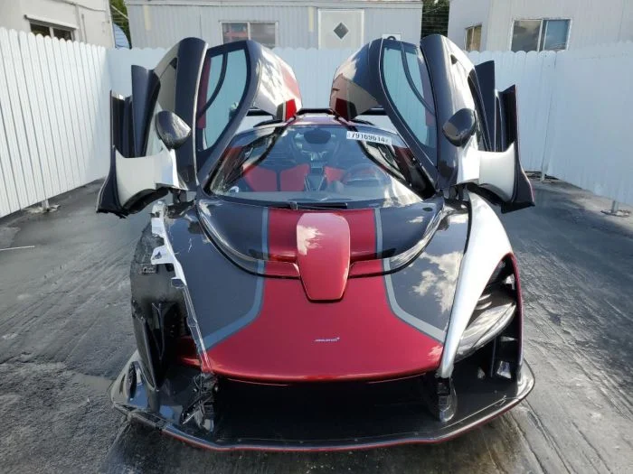 Судя по опубликованным фото, у «Сенны» разбит передний бампер и полностью отсутствуют правое переднее крыло и фара. При этом в остальном карбоновый кузов с серебристыми и красными акцентами выглядит неплохо — как и двухцветный салон. На цифровой приборной панели отображается пробег в 4343 мили (чуть меньше 7 тысяч километров). Для сравнения, в позапрошлом году на тот же аукцион выставляли ещё один битый McLaren Senna, который был в гораздо худшем состоянии, но тем не менее оценивался в 1,3–1,4 миллиона долларов.