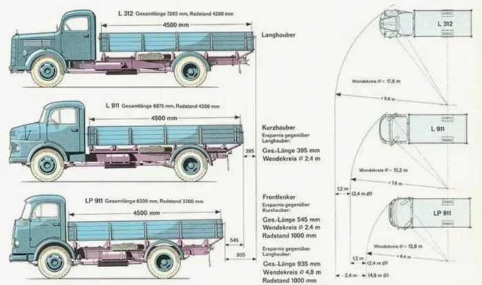 Именно поэтому в 1959 году была представлена новая модель грузовика Mercedes-Benz L-серии с укороченным капотом, благодаря чему такие машины получили прозвище "Курцхаубер" т.е. "короткий капот".
