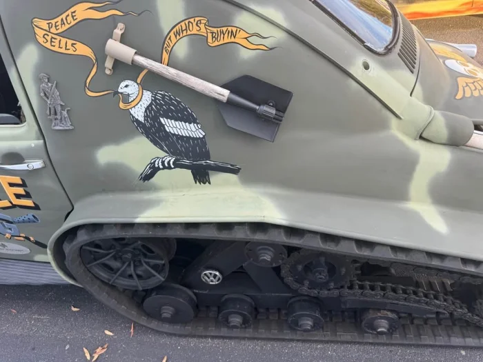 В Соединённых Штатах выставлена на продажу уникальная самоделка, основанная на классическом Volkswagen Beetle 1968 года, представляющая собой аналог танка. Автомобиль получил переработанный кузов, тематическую окраску, гусеницы вместо задних колёс и муляжи тяжёлого вооружения. Продавец запрашивает 25 тысяч долларов (2,1 миллиона рублей). За такую сумму можно приобрести обычный «Жук» этого же временного периода в хорошем состоянии.