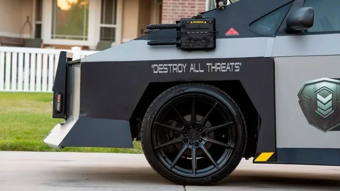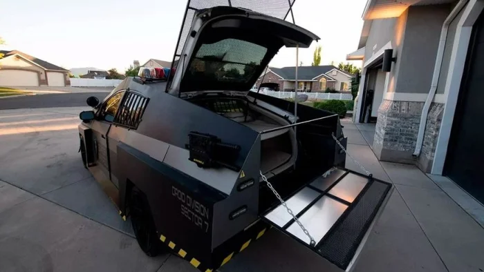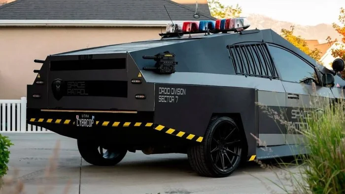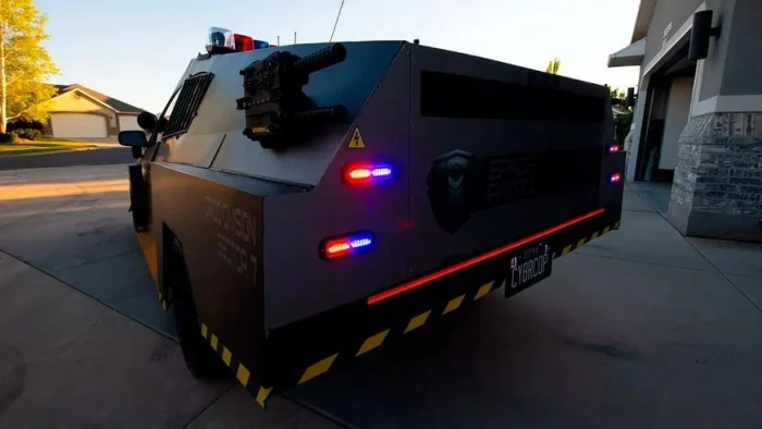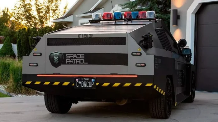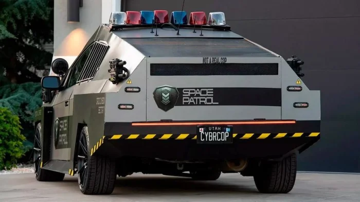 Эта самодельная машина получила собственное имя - Cybercop, поскольку она оформлена в стиле патрульного автомобиля и оснащена мигалками на крыше, парой прожекторов-искателей на передних стойках, а также бутафорскими пулеметами по бортам. Однако, чтобы избежать недоразумений, на транспортном средстве имеются предупреждающие надписи, указывающие, что это не полицейский автомобиль.