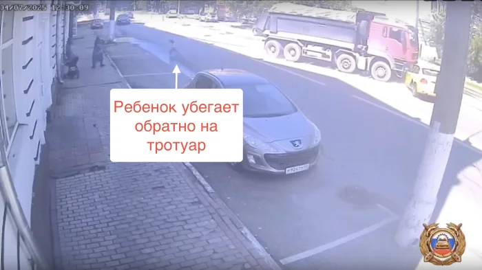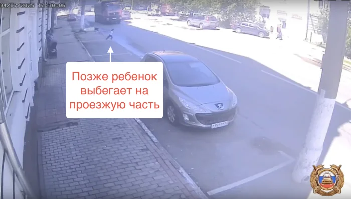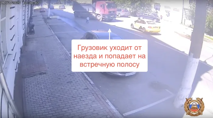 Причиной такого маневра водителя грузовика стало внезапное появление на проезжей части ребенка. Видно на записи, как водитель грузовика пытается избежать наезда на ребенка и уходит на встречную полосу.