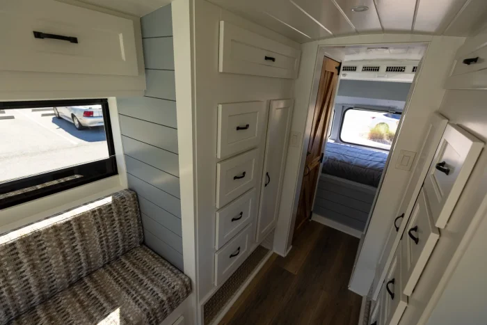 11 июля на аукционе Mecum в штате Флорида будет представлен уникальный автодом, созданный на основе популярной модели школьного автобуса Freightliner FS65. Этот кемпер оснащен всем необходимым для комфортного проживания как минимум двух человек и будет продаваться вместе с электровелосипедом, который можно крепить на задней части автодома. Аукционисты не раскрывают своих ценовых ожиданий по этому лоту. Freightliner FS65 производился с 1997 по 2006 год и был доступен с различными вариантами колесной базы и двигателями от известных производителей, таких как Mercedes-Benz, Cummins и Caterpillar. Согласно информации от Silodrome, за все годы производства было изготовлено 62 764 экземпляра, и многие из них продолжают эксплуатироваться в США до сих пор. Автобус, который стал основой для этого моторного дома, является одним из самых "молодых" представителей модели, выпущенным в 2006 году. Однако, несмотря на относительно молодой возраст, он уже преодолел более 309 тысяч километров. Под его капотом установлена 4,8-литровая рядная дизельная "шестерка" Mercedes-Benz MBE-900, которая сочетается с автоматической трансмиссией. В жилой зоне автодома имеются спальные места для двух человек, удобный диван, функциональный кухонный модуль с двухконфорочной варочной панелью и раковиной, проточный водонагреватель, холодильник, два кондиционера, полноценные душ и туалет, а также множество шкафов и ящиков для хранения личных вещей. Для обеспечения работы электроприборов предусмотрена аккумуляторная система, которая может заряжаться от внешних источников питания. Как указано в описании лота, автодом прошел комплексную реставрацию и зарегистрирован как автофургон.