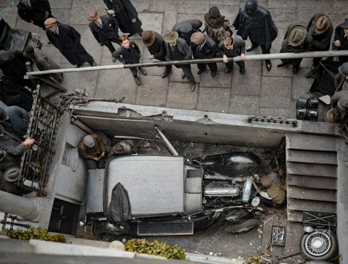 Автомобиль, случайно заехавший в подвал перед квартирой, 1930 год.