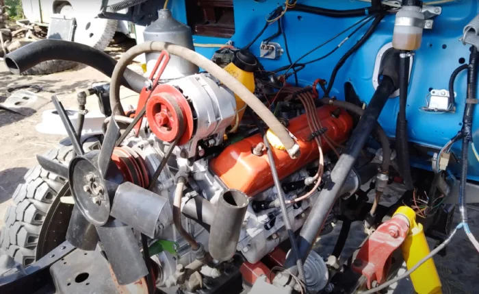 ГАЗ-53 получил совершенно другой двигатель - V-образный восьмицилиндровый ЗМЗ-53 объемом 4,25 литра мощностью 115 л.с. Эта разница в мощности и тяге сделала ГАЗ-53 основной рабочей лошадкой в сельском хозяйстве и промышленности.