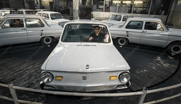 Легковые автомобили ЗАЗ-966 в сборочном цехе, 1969 год.