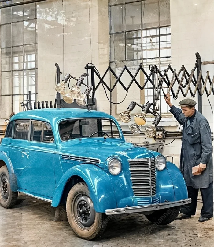 "Москвич-400" на отделочном участке. Москва, 1953 год.