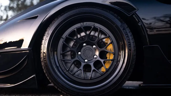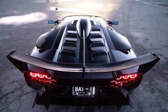 Заднюю часть украсили массивным антикрылом с опорами на крылья, а также кастомным диффузором. Кроме того, автомобиль получил альтернативные колёсные диски Rohana в фирменном дизайне Liberty Walk. Интерьер изменился куда скромнее: в салоне появились новая медиасистема Pioneer Carrozzeria и цифровое зеркало заднего вида. Зато в подвеске прописалась пневмосистема, благодаря которой суперкар может буквально «ложиться» на асфальт.
