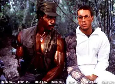 Наконец, главный снимок, непонятно как прошедший цензуру: Ван Дамм и Карл Уэзерс позируют в самом начале съемок. На правой руке Жан-Клода – фрагмент костюма. Впрочем, это единственное, что осталось от участия в "Хищнике" Жан-Клода: сыграть её ему так и не пришлось. Заменил его в качестве инопланетного охотника двухметровый гигант Кевин Питер Холл. После двух дней съёмок Ван Дамм покинул проект, т.к. не захотел быть «ходячим спецэффектом». Впрочем есть и другие версии его неучастия: и ростом не вышел, и отказался выполнять опасный трюк в громоздком и неудобном костюме, ссылаясь на высокую вероятность травмы, - не суть...