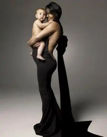 Ну, а когда Эль и ее партнер - швейцарский финансист Арпад Бюссон - ждали второго ребенка, Аурелиуса, Макферсон нарисовала контуры плода на своем животе. Снимок стал сенсацией...
