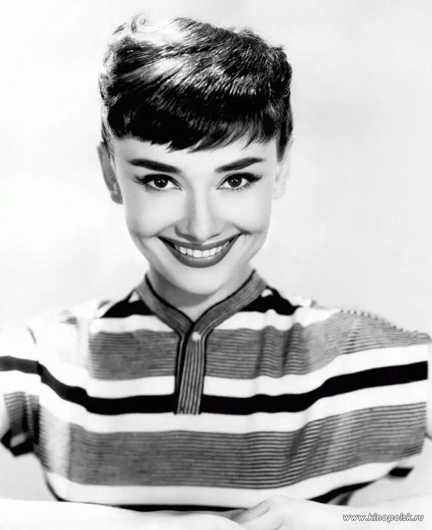 Andrey Kathleen Hepburn Ruston. Дочь английского банкира и голландской баронессы, Одри Хепберн, урожденная Эдда Кэтлин ван Хеемстра Хепберн - Растон, родилась 4 мая 1929 года в Бельгии, в местечке Иксель под Брюсселем. Ее школьные годы прошли в оккупированном фашистами Арнхеме (Голландия), где она жила с матерью после развода родителей. Одри училась балету в Арнхемской консерватории, затем, после войны, продолжила образование в Лондоне. В начале 50 - х годов Одри посещала классы актерского мастерства Феликса Эйлмера и снималась в нескольких британских фильмах. В 1951 году французская писательница Колетт, увидев Одри на съемках картины `Малышка из Монте - Карло`, настояла на том, чтобы Одри исполнила главную роль в бродвейской постановке ее романа `Жижи`.Благодаря этой весьма успешной работе Хепберн вскоре сумела получить роль в фильме `Римские каникулы` с Грегори Пеком, за которую была награждена премией `Оскар` как лучшая актриса. Впоследствии она еще четырежды номинировалась на `Оскар`. Потрясающая внешность наряду с актерскими способностями обеспечили Одри Хепберн головокружительную карьеру в кино и шоу - бизнесе. Свое свободное время она посвящала благотворительности и общественной деятельности, была специальным послом ЮНИСЕФ, участвовала в миссии милосердия в терзаемом войной Сомали и других горячих точках. В 1960 году у Хепберн родился сын Шон от брака с Мэлом Феррером. После развода с Феррером Одри выходит в 1968 году замуж за итальянского психиатра Андреа Дотти, и через год у них родился сын Люка. В 1976 году, после долгого перерыва, актриса играет заглавную женскую в британском фильме `Робин и Мэриан`, где ее партнером был Шон Коннери, а последней работой Одри Хепберн в кино стала роль в фильме Стивена Спилберга `Всегда` (`Always`, 1989). В 1992году, когда Хепберн вернулась из Сомали, врачи поставили ей диагноз `рак кишечника`. Одри Хепберн скончалась на 64 году жизни, 20 января 1993 года, в маленьком швейцарском городке недалеко от Лозанны.