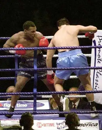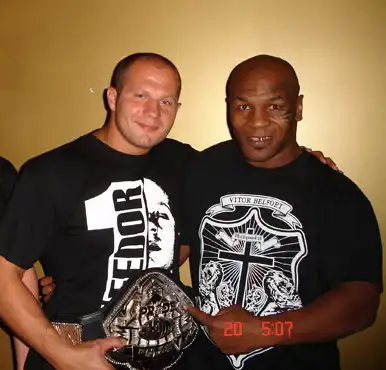 Хороший бы из него фигурист вышел... Странно, не нашёл знаменитой фотки, где он ухо откусывает)))). Вообще, великий спортсмен, но Фёдор Емельяненко(с ним на 1 фотке) его бы 1 ударом укокошил!!!