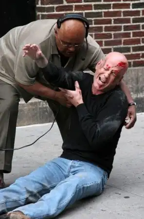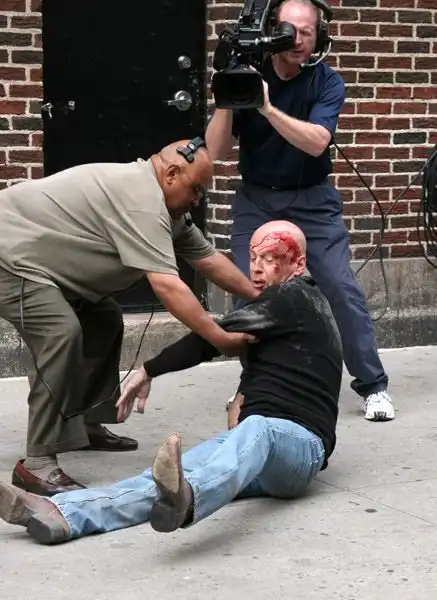 Брюс Уиллис (Bruce Willis) на шоу Дэвида Леттермана в Нью-Йорке решил показать трюк ))))Без дублера, однако, не вышло =)) Бедняга…