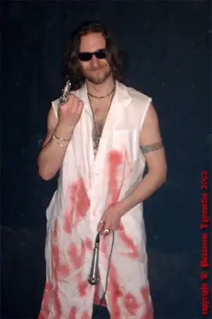 Спиногрыз, пожалуй, является самой темной лошадкой из всей четверки, восставший из могилы упырь, вурдалак, по сравнению с которым легенды о Дракуле покажутся вам детской сказочкой. Считает, что язык секса - самый доходчивый. Одно время страдал от пагубной страсти - активной орнитофекалии - ловил голубей и срал им на головы, из-за этого "Рогатые Трупоеды" совершенно не могли давать концертов на открытых площадках, потому что слеталось слишком много стервятников, и Спиногрыз просто терял контроль над собой при виде такого количества пернатых. Но сейчас он сидит на специальных транквилизаторах, так что от этой проблемы группа избавилась.