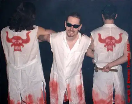 Именно эта четверка брутальщиков в сентябре 2001 года записывает демо "Девки, секс и трупный яд", которое было ими послано на ... (нет, не в пешее путешествие с эротическими приключениями), а на разные крутые лейбаки. Но Фарш Тети Ады Рекордингз, и Тухлое Мясо Продакшенз, и даже Волк и Семеро Бафометов Рекордз оказались далеко не на уровне и решительно отказывались дать ребятам бабла и подписать цивильный конракт. Но были и те, чьи цепкие лапки отчаянно вцепились в наших гениев и любыми способами пытались заманить их к себе. Однако на последнем этапе яйца у Железных Яиц Рекордз оказались не достаточно круты и демо, посланное в ... Анус Дьяболюс Инфренум Рекс., там и осело, как, впрочем, и сами виновники нашей истории. Фурор, произведенный "Девками, сексом трупным ядом" был настолько велик, что молодым дарованиям сразу же выделили самого помпезного продюсера, на которого только хватило бабла. Из страны восходящего солнца в качестве продюсера был выписан Сукапися Тагтгренака - четвероюродный брат сводной сестры жены шурина именитого шведского металл-продюсера Питера Тагтгрена.