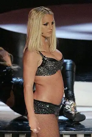 Бритни хоть бы живот втянула... )) или одолжила у какого-нить рэппера балахончик))