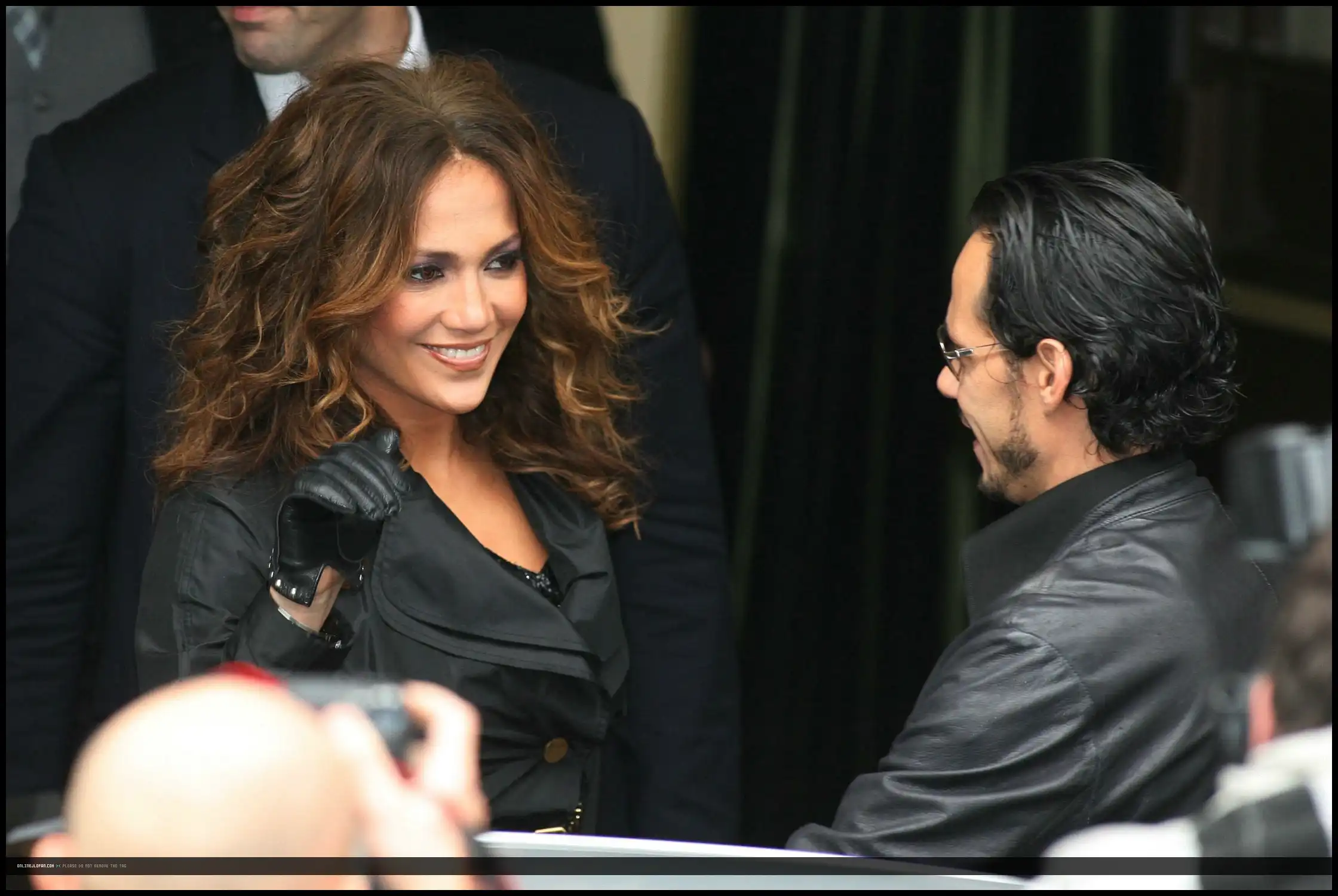 Jennifer and Marc outside at BBC Radio 1 Studios in London (September 21) 2007. На фото видно, что Дженнифер беременна.