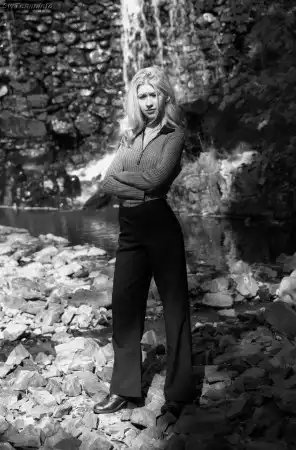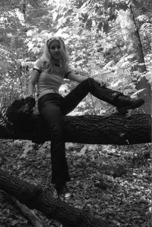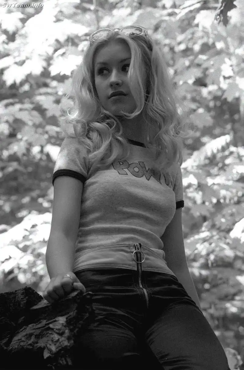 Черно-белая фотосессия на природе и там, где она в сиреневых штанах под змеиную кожу, - совсем не новые фотки. Она на них совсем молоденькая.