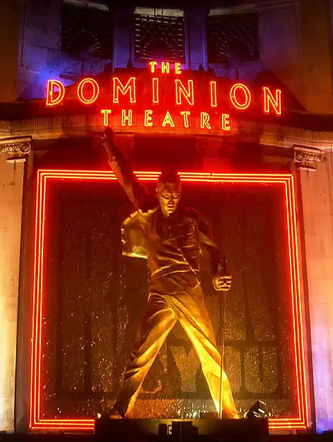 18 июня 2003 года в Лондоне возле "Dominion Theatre", где регулярно проходят постановки шоу «We Will Rock You», состоялось торжественное открытие памятника, воздвигнутого в честь Фредди Меркьюри. Высота памятника составляет около 8 метров. Памятник устанавливали в течении двух часов, и все это время двор театра был закрыт для посторонних.