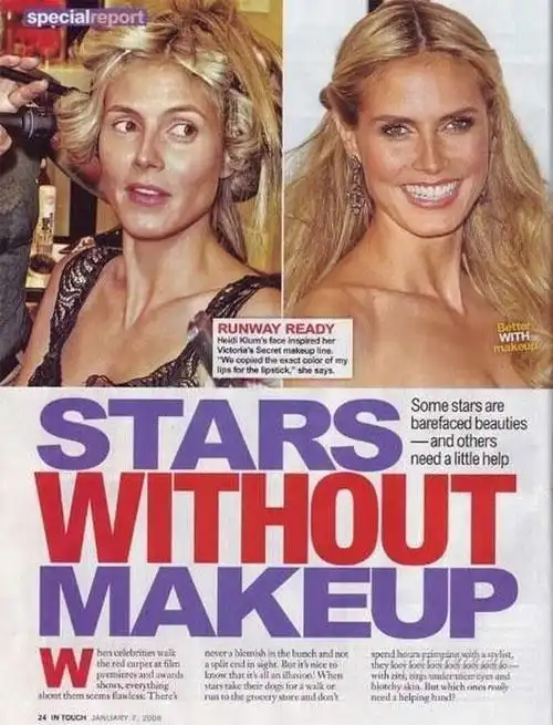 Нормально они выглядят не накрашенные, просто фотки без косметики ещё и хуже качества, чем с косметикой, да и не привыкли их видеть такими. Они такие же люди как и мы.