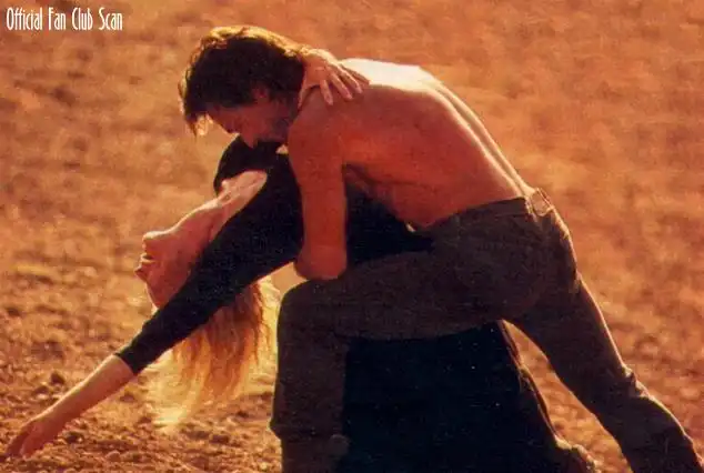 Режиссеры, конечно, используют и его неувядшее искусство танцора. На съемках филь-мов, где есть возможность передохнуть, он танцует блистательно. А еще он прыгает с ма-шины, летящей на бешеной скорости на другую, взмывает на доске на гребень гигантской волны, делает опасные затяжные прыжки с парашютом - а уж в фильме "Дом у дороги", получая по роли затрещины, следит, чтобы его били всерьез.