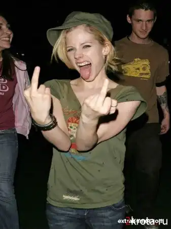 Аврил Лавин - пьянь какая-то... не идёт ей так себя вести. Хрупкая девочка, симпотичная на внешность, а ведёт себя как....я всё могу понять. но выставление среднего пальца на всеобщее обозрения - очень глупо. Не воспитанные люди.