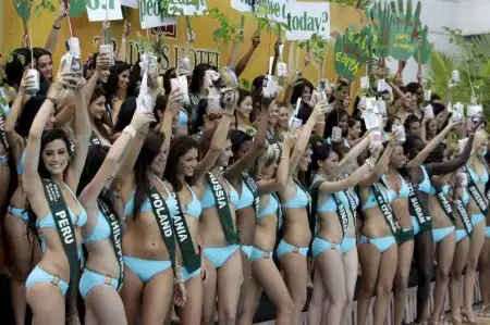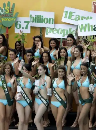 Что за идиотский цвет купальников, он их все портит. Одели бы красные)