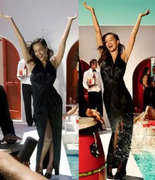Но даже она не избежала участи ретуширования. Если сравнить ее фото для календаря Campari с фото, сделанными на съемочной площадке, то сразу видно, где поработала рука умельца.