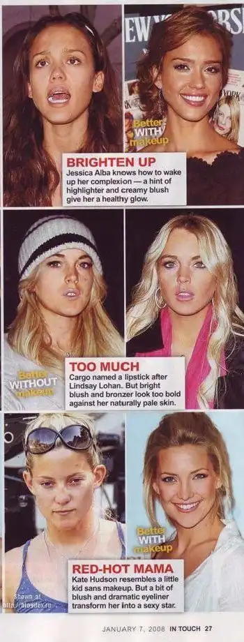 ага блин не правильно назвали знаменитости без грима и с гримом +чудеса фотошопа)))