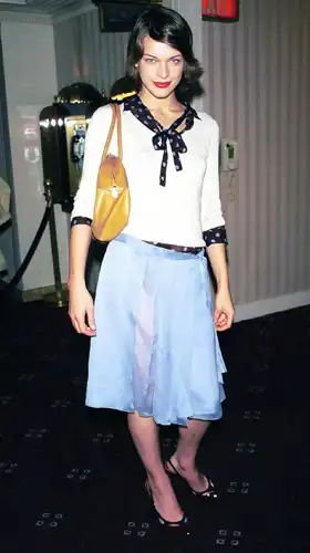2002 год. В 26 лет Миле очень нравилось подчеркивать красоту своих ног ультра-мини.