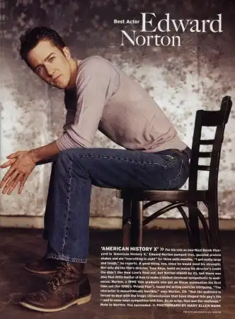 Дебютом в кино для Нортона стал фильм «Первобытный страх» (1996), где он сыграл молодого заключенного социопата. За эту роль он получил премию Золотой Глобус и был номинирован на премию Оскар, как лучший актёр второго плана. Впоследствии его не раз номинировали, в том числе и на лучшую мужскую роль за роль в фильме о нео-нацистах «Американская история Икс», а за участие в экранизации романа Чака Паланика «Бойцовский клуб» Эдвард не был номинирован на серьезные кинонаграды, однако к нему пришла всемирная слава.