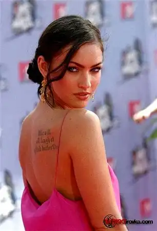 Звезда «Трансформеров» Меган регулярно пополняет свою коллекцию татуировок. Ее слова по этому поводу: «Если у меня плохое настроение, приятно выбить тату, чтобы перебить эмоциональную боль». На сегодняшний день у актрисы их 9, в том числе лирические высказывания, довольно реалистичный портрет Мерилин Монро и яркая татуировка с полумесяцем и звездами. Благодаря татуировкам тело Мег стало столь же уникальным, как ее лицо, и поэтому она не может прибегать к услугам дублерши во время съемок откровенных эпизодов. К счастью, Фокс — девушка раскованная.
