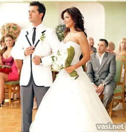 Расписавшись 15 августа в киевском дворце бракосочетания, 22 августа влюбленные устроили большое торжество в одном из самых дорогих отелей Турции. Невеста в платье от дизайнера Екатерины Шаховской с 5-метровым шлейфом танцевала первый свадебный танец под песню Уитни Хьюстон «I Will Always Love You».