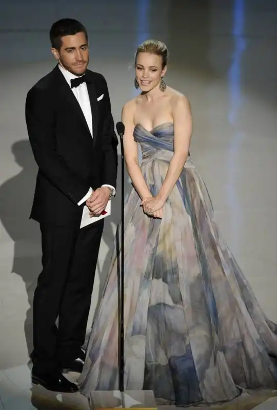 8. Джейк Гилленхаал и Рэйчел МакАдамс представляют награду за лучший сценарий, которая ушла сценаристам фильма «Тужься». (Mark J. Terrill / AP)