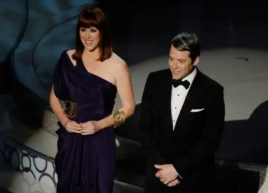 16. Молли Рингуолд и Мэттью Бродерик представляют награду Джону Хьюзу, снявшему известные в 80-ых годах фильмы, такие как «Выходной День Ферриса Бьюлера», «Милашка в розовом» и «Клуб Завтрак». Рингуолд снималась в нескольких его фильмах, включая «Шестнадцать свечей», а Бродерик играл главную роль в фильме «Выходной День Ферриса Бьюлера». (Kevin Winter / Getty Images)
