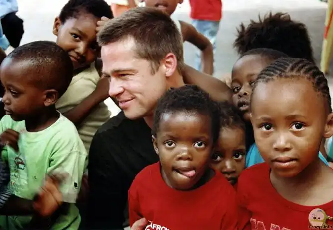 Питт посетил приют для ВИЧ-инфицированных детей и детей, подвергшихся жестокому обращению в Йоханнесбурге, Южная Африка, 5 ноября 2004 года. Питт находился в Южной Африке со 2 по 9 ноября. Эту поездку организовала многонациональная неправительственная организация DATA (ДСТА — долг, СПИД, торговля в Африке) учрежденная фронтменом группы U2 Боно. Эта организация призвана улучшать политическую, общественную и экономическую ситуацию в Африке.