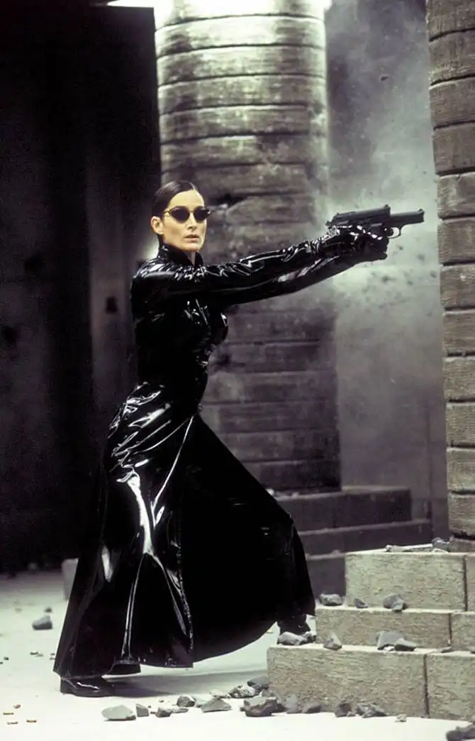 Кэрри-Энн Мосс сыграла смертоносную компьютерную хакершу Тринити в «Матрице» 1999 года. Фильм прославился своими акробатическими замедленными эффектами, а героиня Мосс стала известна благодаря своему необычному имени и черному гардеробу.